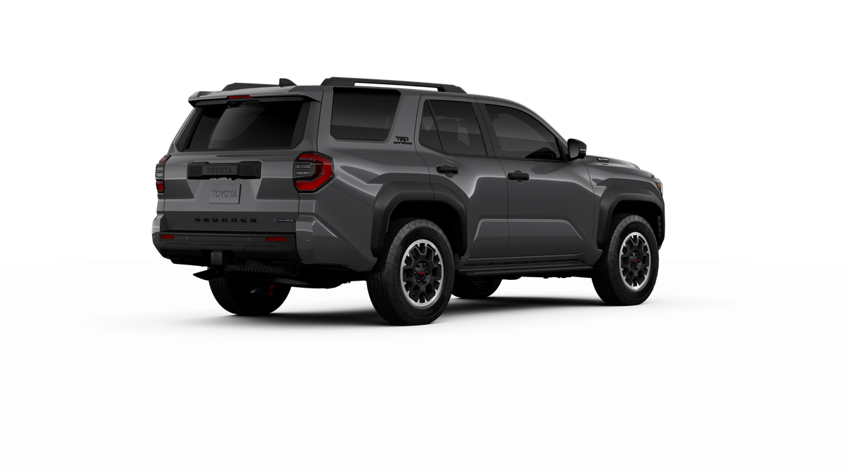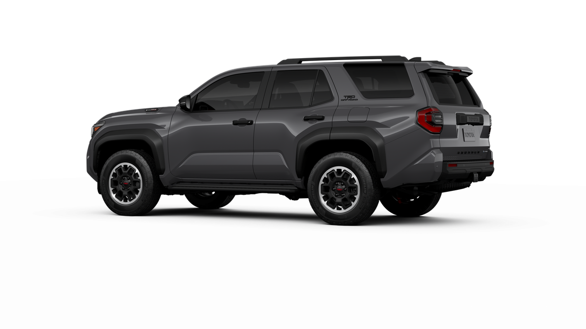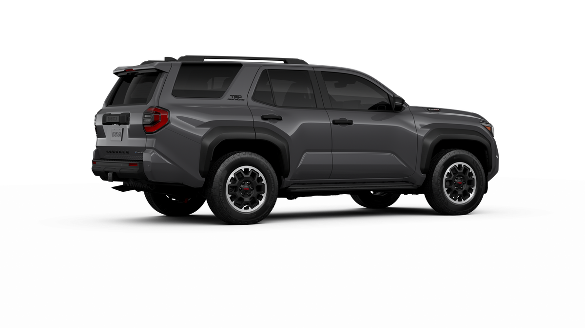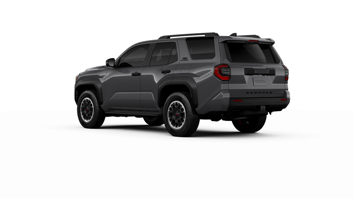- Black honeycomb-style grille, mirror caps, door handles, and overfenders; color-keyed rear spoiler; black "TRD OFF ROAD" and "4RUNNER" badges
