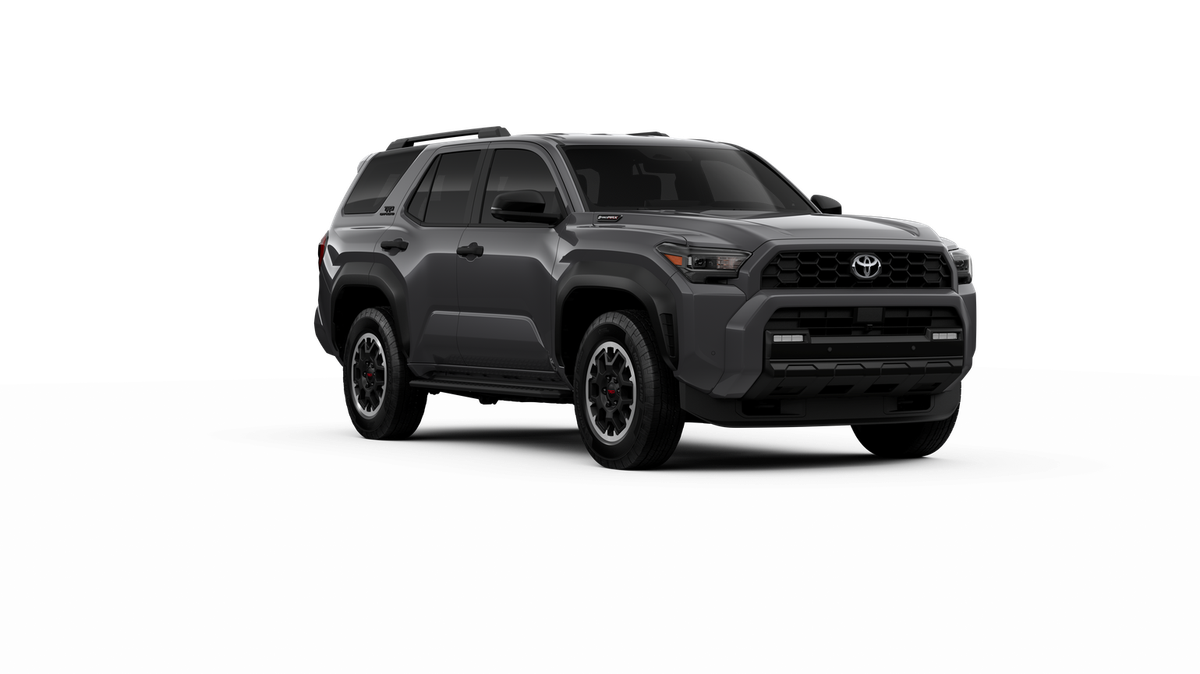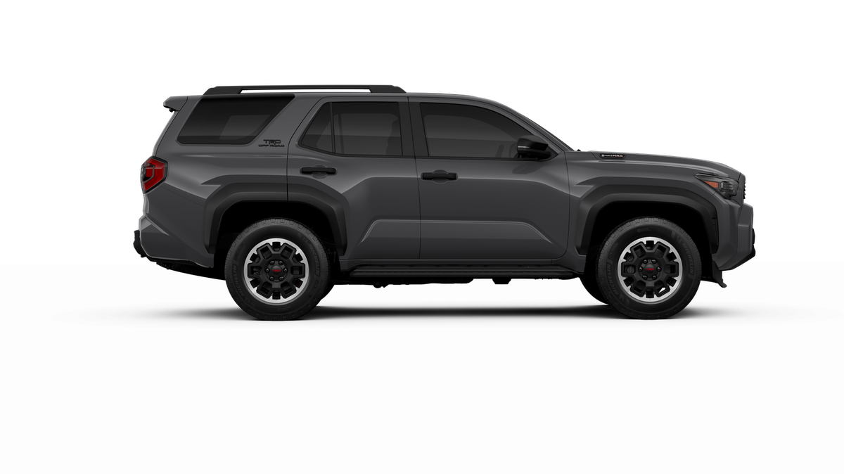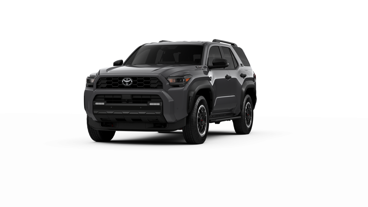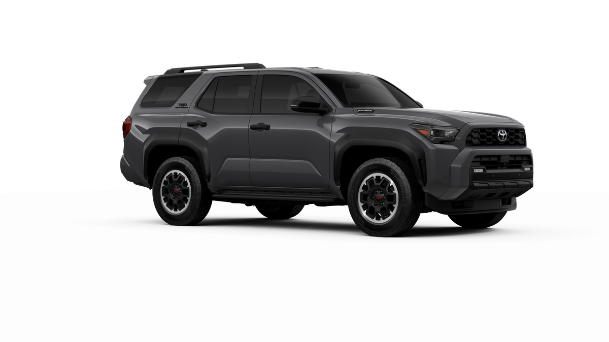 - Black honeycomb-style grille, mirror caps, door handles, and overfenders; color-keyed rear spoiler; black "TRD OFF ROAD" and "4RUNNER" badges