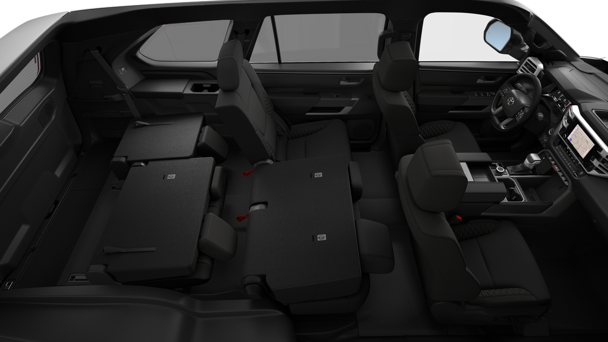 - 60/40 split, reclining, fold-down, fold-up, tumble-forward second-row seats with center armrest; adjustable headrests with one-touch access to third row