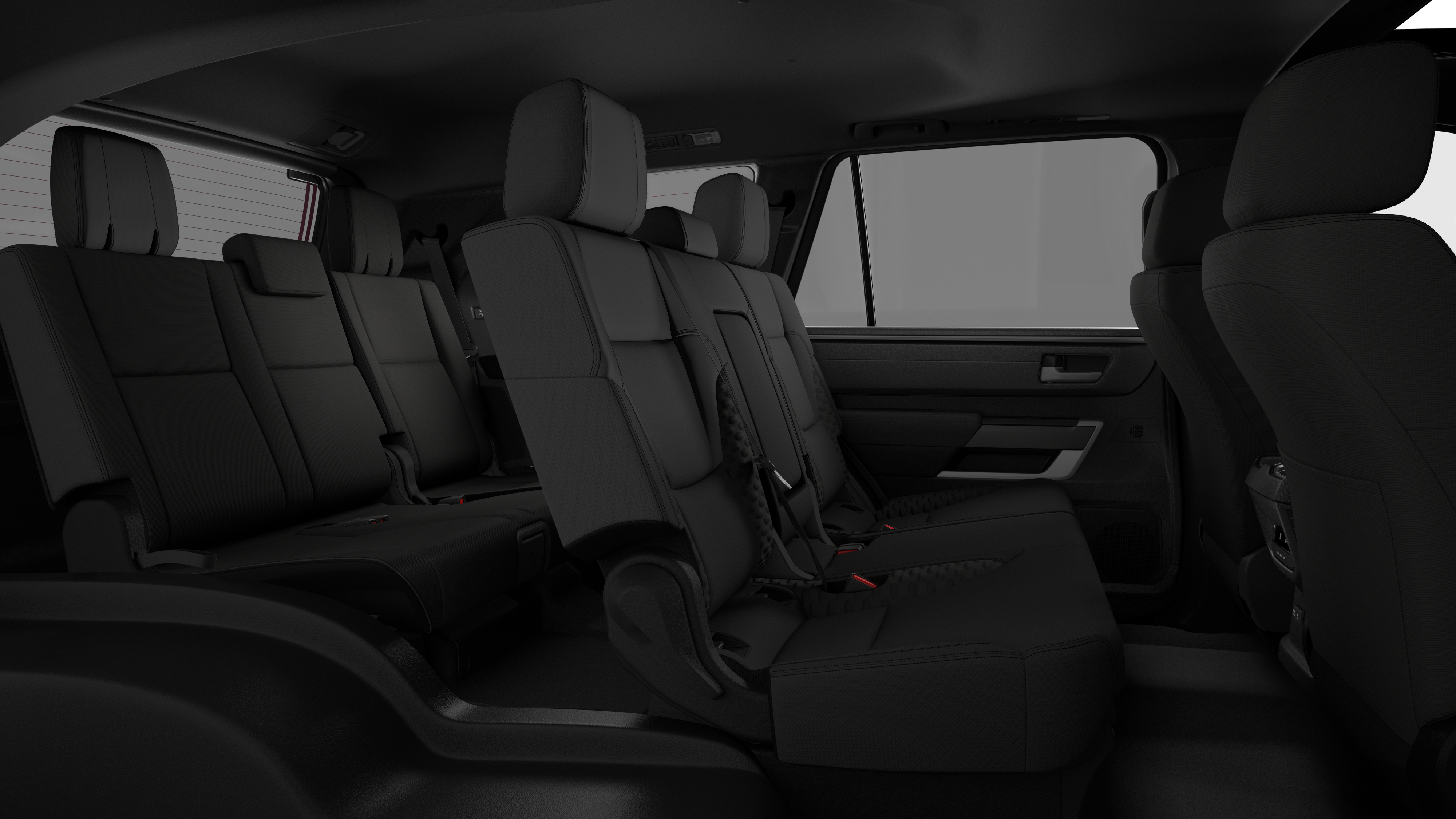 - Fabric 60/40 split, sliding, power-reclining, power fold-down third-row seats with adjustable headrests
