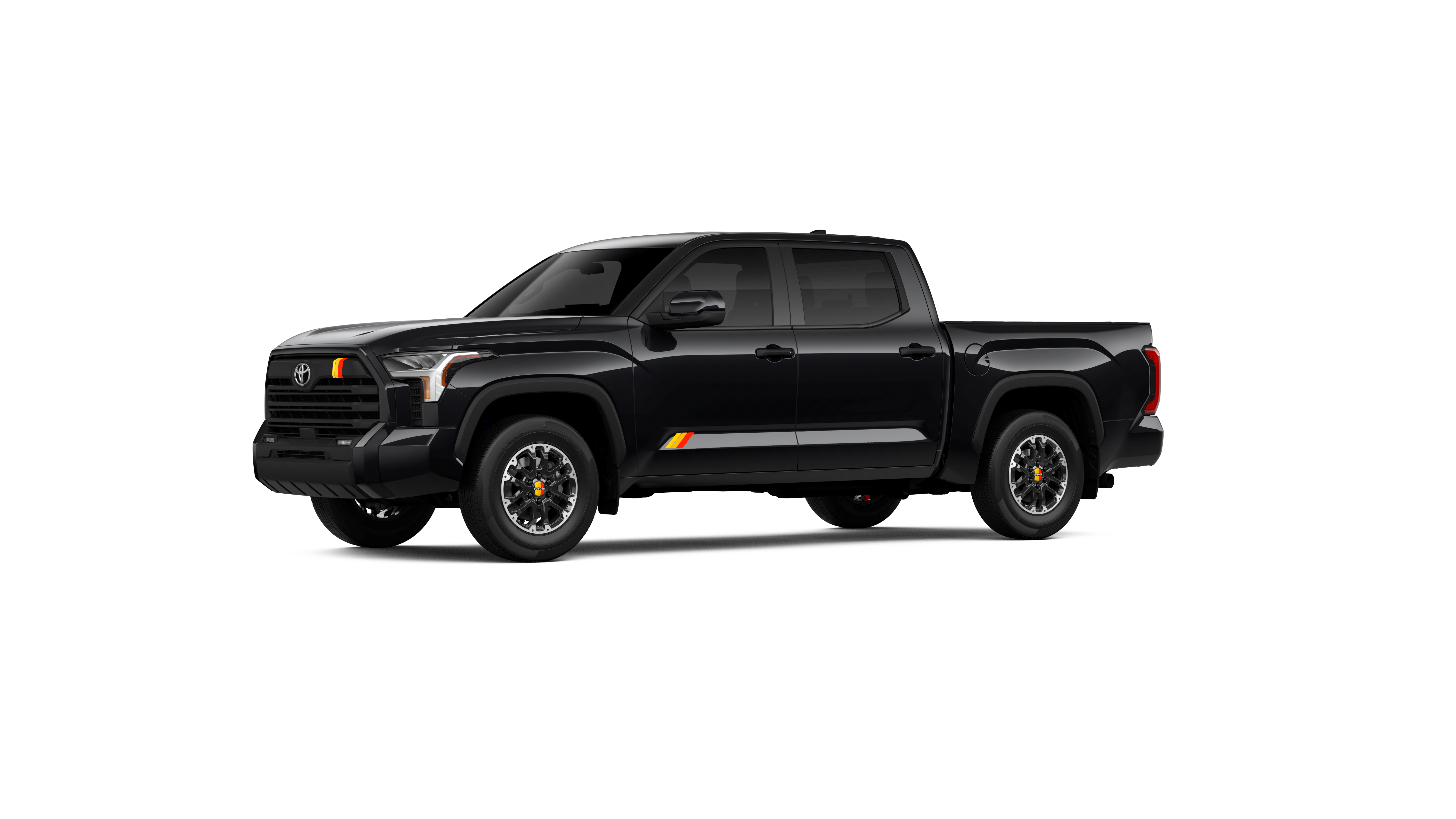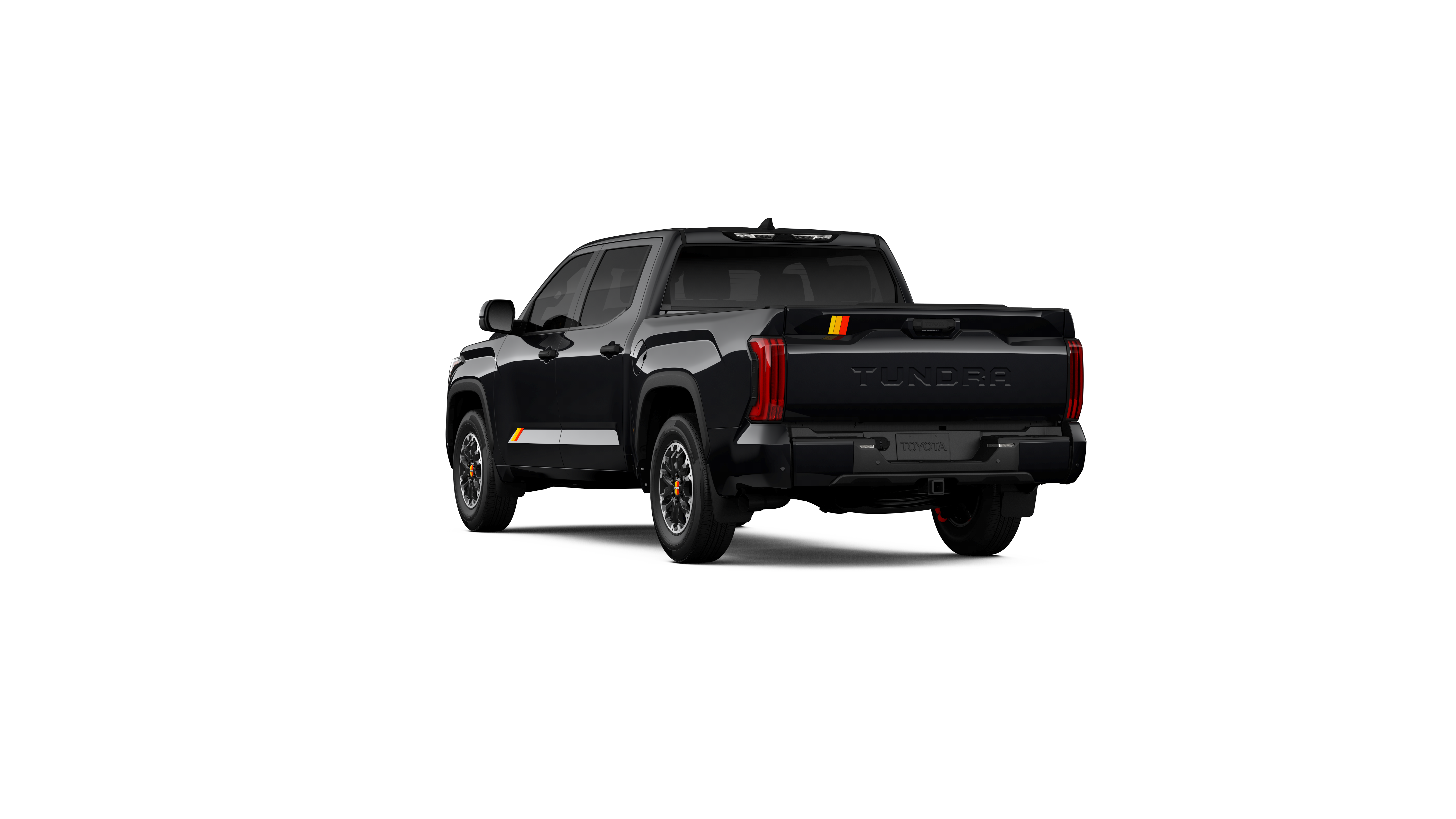 - Chrome "TUNDRA" and "SR5" door badges; black door handles, window molding, mirror caps, tailgate spoiler and overfenders